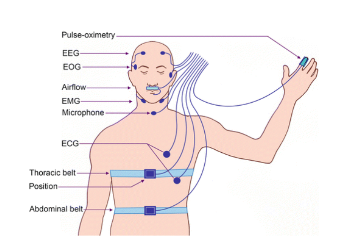A sleep study, also called polysomnography, is a comprehensive test used to diagnose sleep disorders, including sleep apnea, insomnia, restless legs syndrome, and narcolepsy. During the study, various body functions are monitored while you sleep, such as brain activity (EEG), eye movements, heart rate, oxygen levels, airflow, and muscle activity. This test helps doctors understand sleep patterns, identify breathing disturbances, and determine the severity of sleep-related problems. Sleep studies are essential for planning effective treatment and improving overall sleep quality.